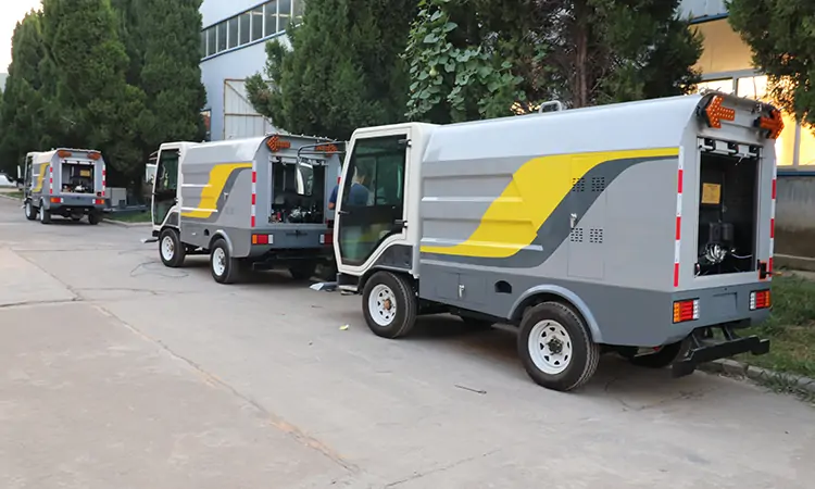 發(fā)往某環(huán)衛(wèi)公司的多臺四輪高壓清洗車準備裝車