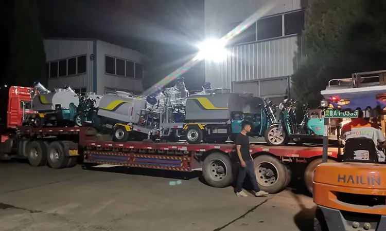 多日的加班加點(diǎn)終于在交貨日當(dāng)天完成了所有小型電動灑水車的安裝以及調(diào)試,經(jīng)過功能測試開始裝車發(fā)貨。此次發(fā)往某環(huán)衛(wèi)公司的這批小型電動灑水車配備了對沖,霧炮,高炮等功能,不僅可以用于日常的道路灑水作業(yè),也能用于霧炮降塵,園林澆水,地面高壓沖洗等工作,適用于小區(qū),社區(qū),學(xué)校,園區(qū),廠區(qū),鄉(xiāng)鎮(zhèn)等場景。